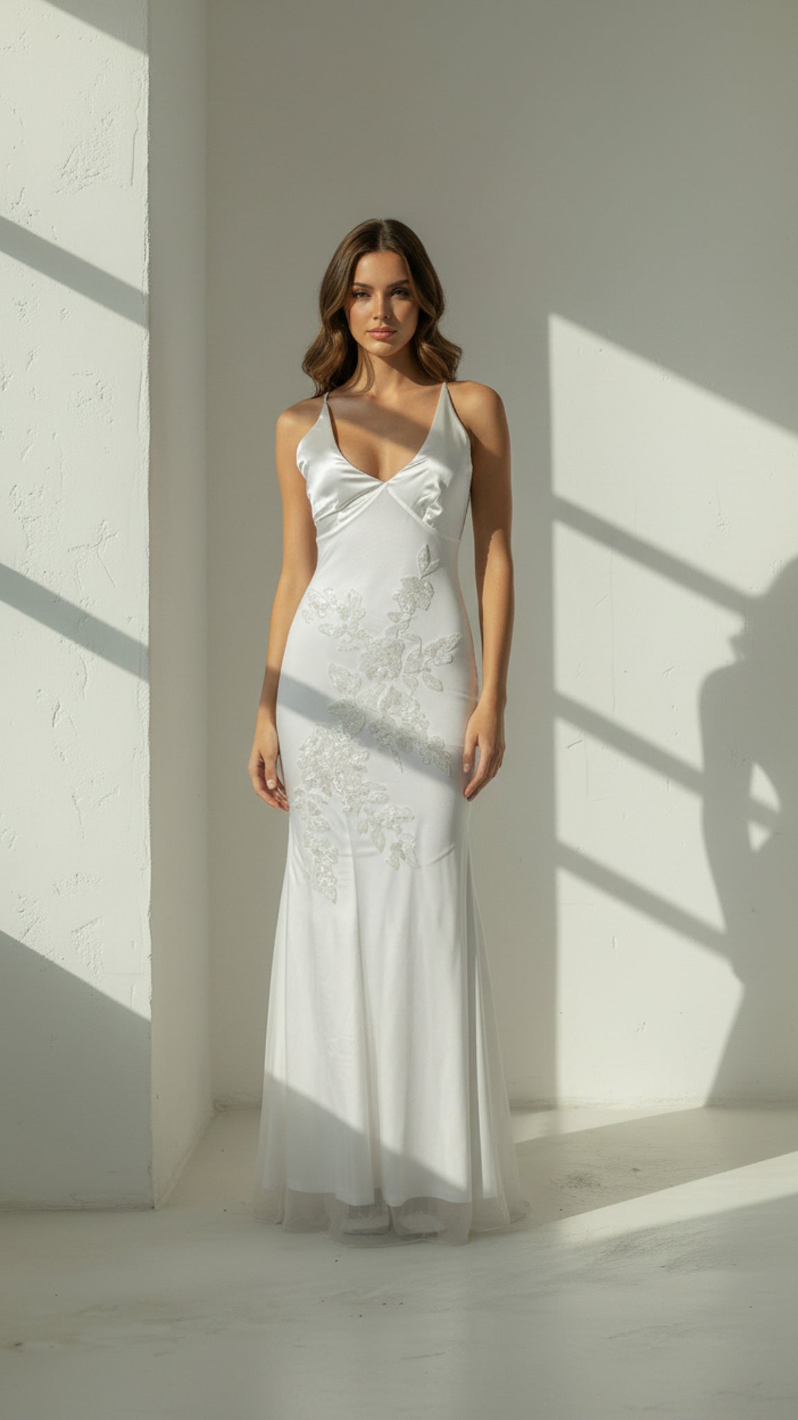 Style: Sleeveless fitted maxi dress with a soft, elegant silhouette