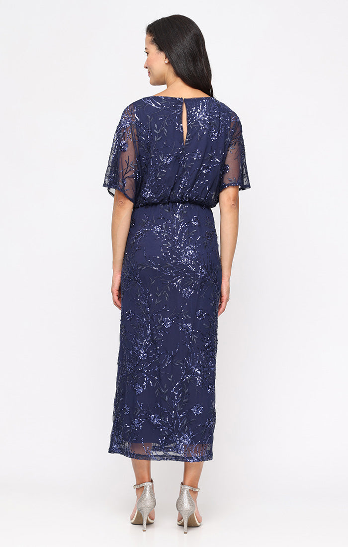 The SL Fashions 9196478 Formal Mother of the Bride Tea Length Dress is the epitome of elegance. Featuring shimmering sequins throughout, this dress offers a touch of sparkle and sophistication. The flattering tea length adds a graceful finish, while flutter sleeves provide light, airy coverage. Perfect for the mother of the bride or any formal event, this dress combines style and comfort for an unforgettable look on the big day or a special evening.
