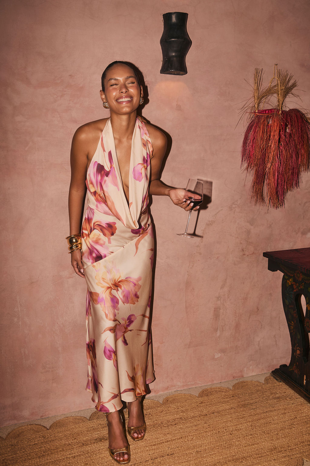 Make the Valentina Light Pink Floral Maxi Dress your whole personality on every vacation. Or everyday, we love that for you. This gorgeous pink, floral, deep cowl, flowy material, with a lace up back will steal the show every time. Things can wait till after sunset.