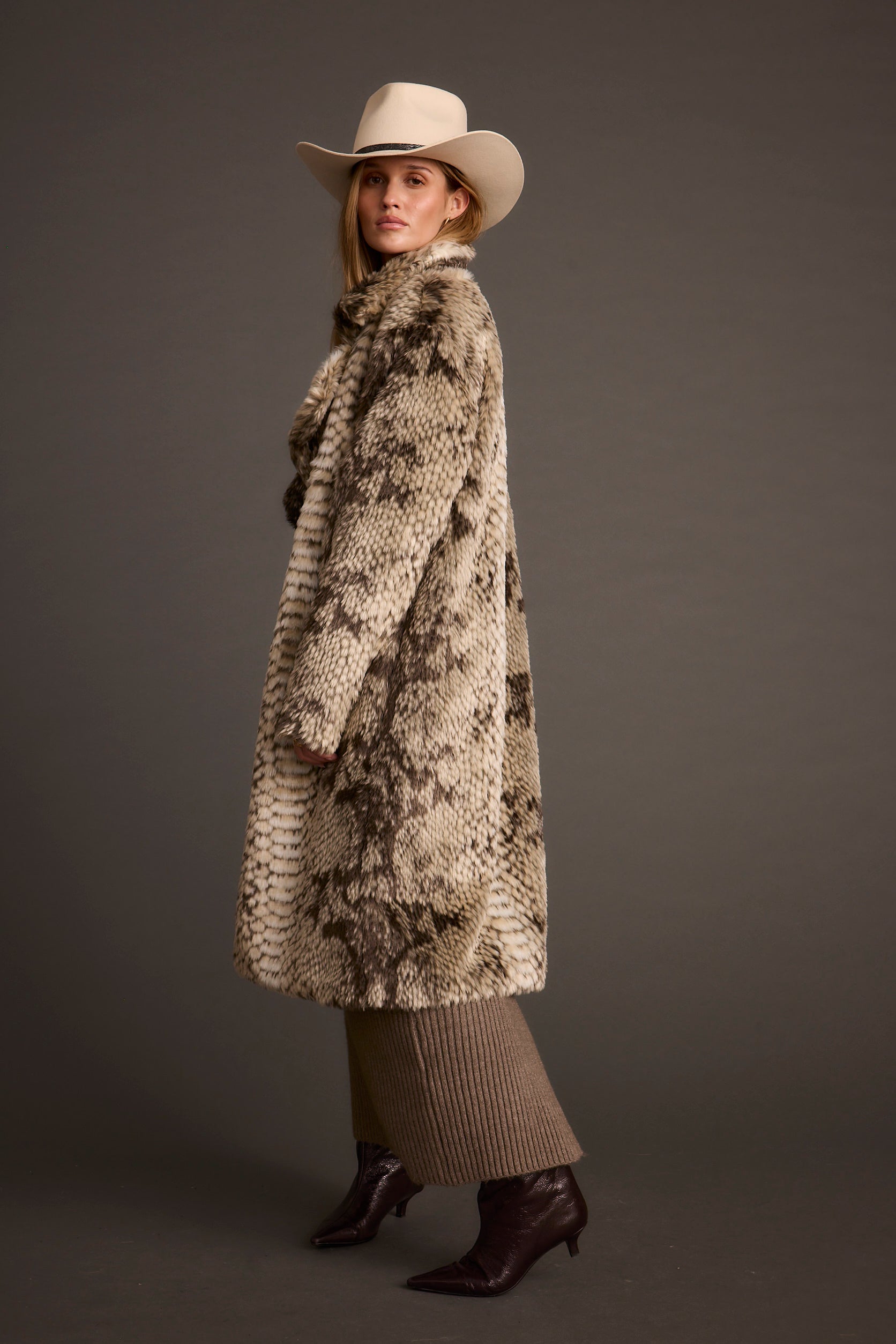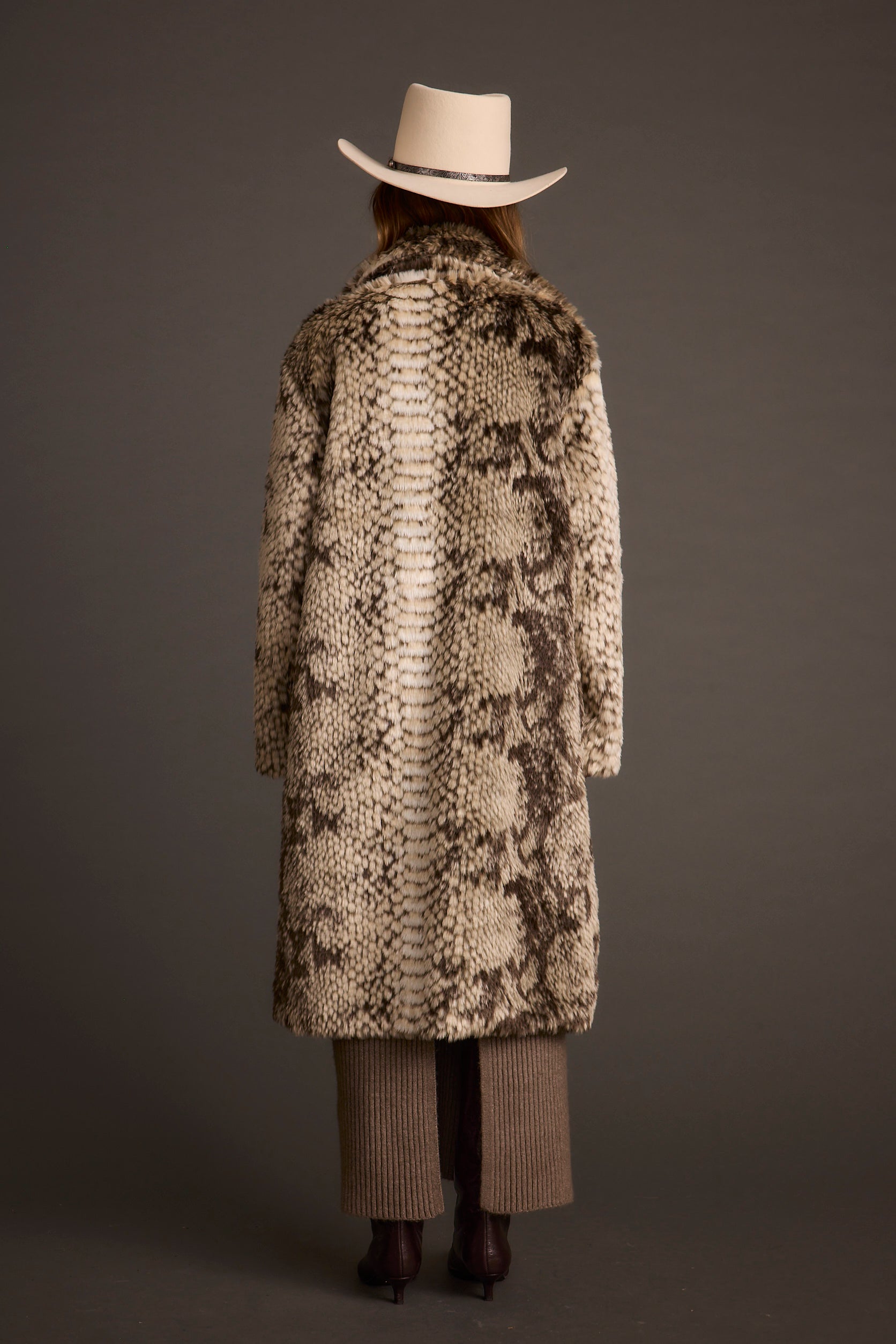 - grey snake faux fur jacket