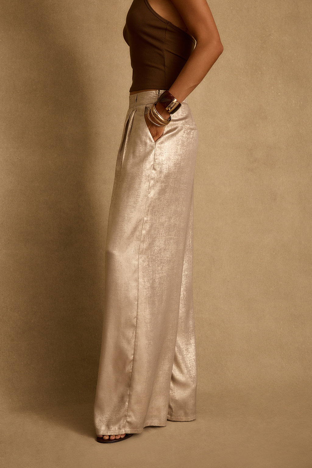 Main plans: wear the Waldorf Gold Shimmer Trousers. Made from a shimmery gold fabric with an easy wide leg fit, they’re perfect for parties, dinner dates, and ordering another round just because