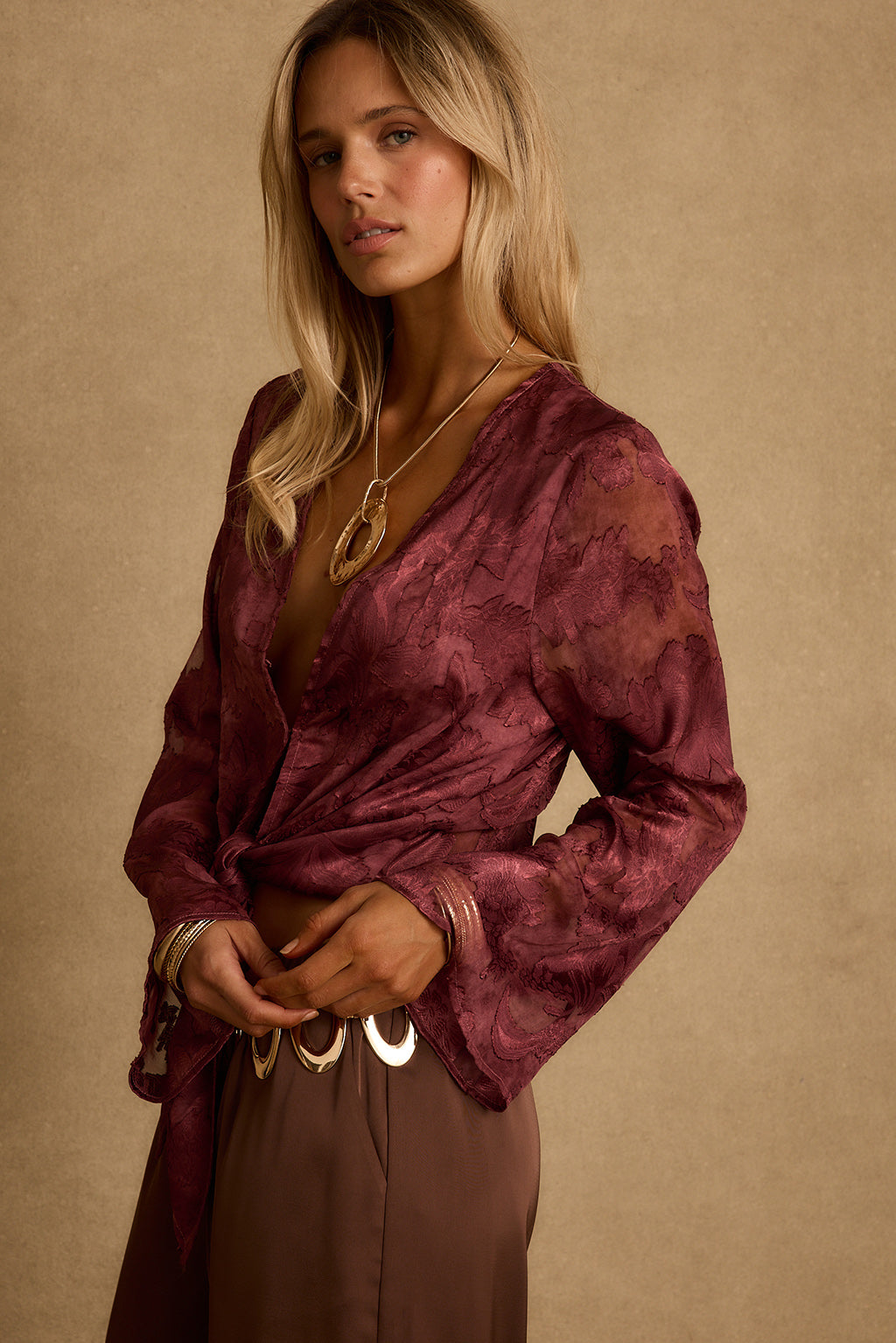 Did you say open bar? I'm in. Mix and match the Waverly Mulberry Blouse with your pretty pink cocktails all night long, a perfect dress for any bachelorette celebration. The sheer sleeve detailing and front tie make the outfit beautifully flowy while keeping it comfortable.